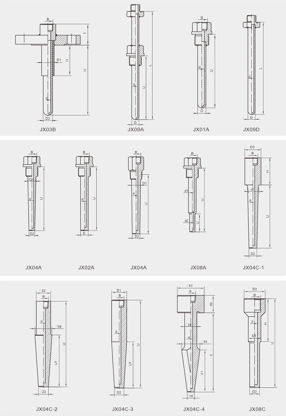 用于焦爐蓄頂測溫,熱電偶插深接近2米采用四方加強盒及加強筋確保產品水平安裝時在高溫環(huán)境下的不會變形。采用活動法蘭連接,可以調節(jié)插深。