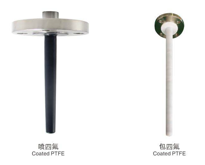 防腐熱電偶(阻)的套管或元件外包裹有塑料之王之稱的聚四氟乙烯, 其能耐絕大部分的酸堿及有機物的腐蝕,測溫溫度<200℃ ,可代替高鎳合金、鈦、鉭等貴金屬保護管, 具有造價低、加工容易等優(yōu)點。